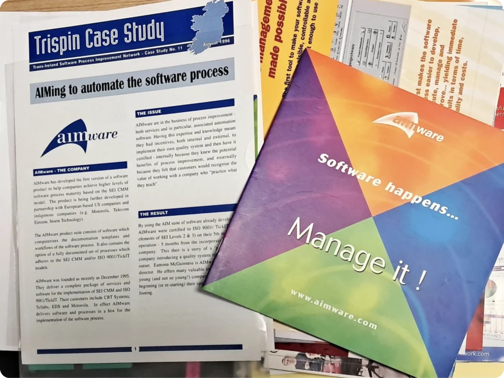 The first release of the aimware Suite, based on Lotus Notes, was shipped in 1996. Aimware refers to ‘’aiming for increases in work and project management maturity with software’’.