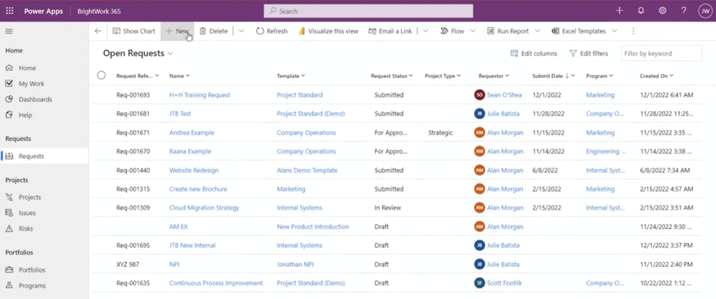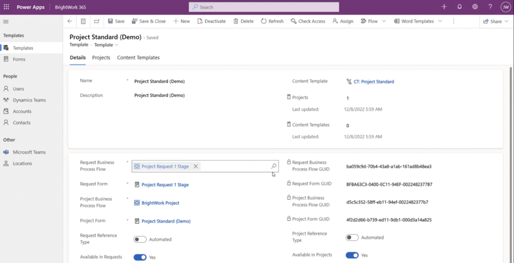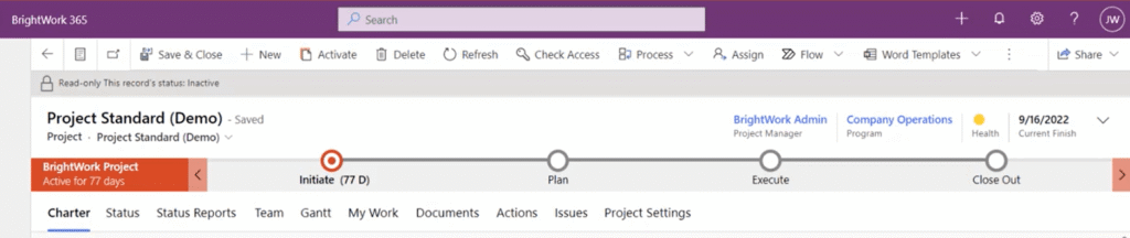 BrightWork 365 leverages both business process flows and forms so that your organization can establish the standardized processes for project management in Microsoft 365