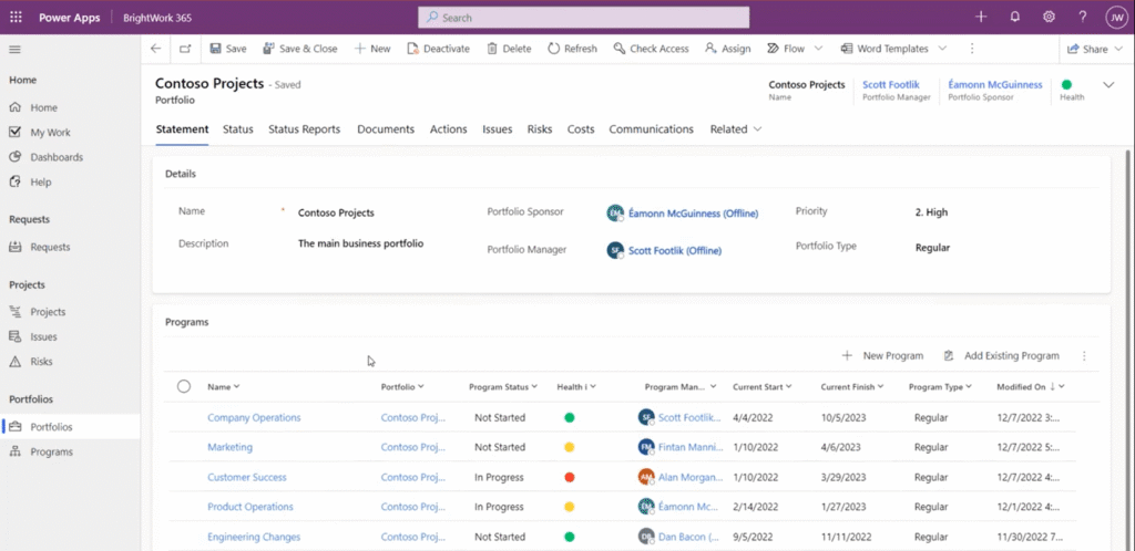 And finally, we get to the portfolio level. BrightWork 365 allows you to have many portfolios if you wish or you could just have one, that’s up to you.