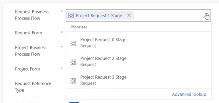 For example, you may want to modify the BPF at the request level. Maybe one-stage is a little too simple. You want to change it to a two-stage approval process where there a two different people who need to approve it. It is just as simple as clicking in the dropdown and selecting a new BPF.