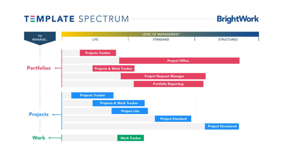 BrightWork comes with a range of best-practice project and portfolio management templates for different types of projects and teams.
