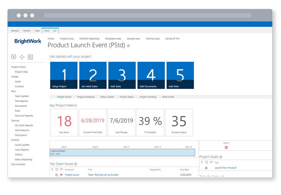 If you have a large team that deals with numerous projects at once, the previously mentioned tools can get rather limiting in use. Instead, you can try Brightwork, a project and portfolio management solution for SharePoint.
