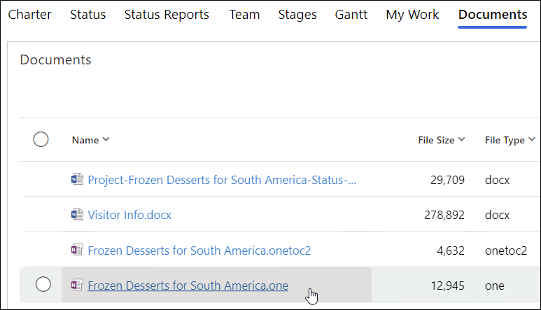 Or, click on the .one file within the Documents tab in your project template.