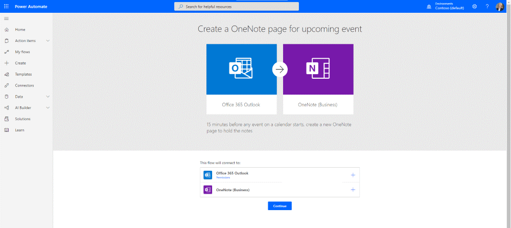 Power Automate is based on pre-planned templates, including multiple options for OneNote.