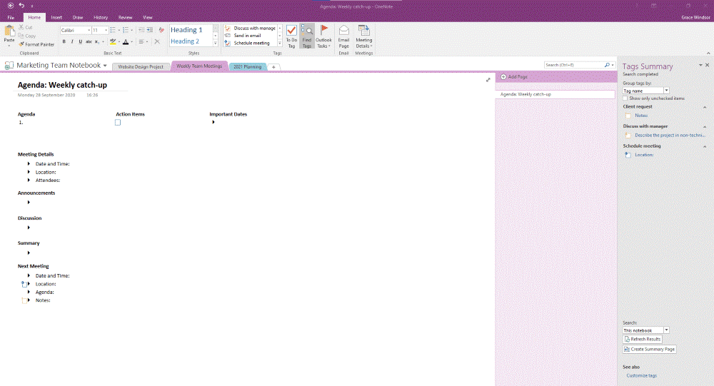 We’ll take a closer look using OneNote to manage projects: combine OneNote and Outlook, organize content with Tags, project wikis, work in Microsoft Teams, and use Power Automate workflows to save time.