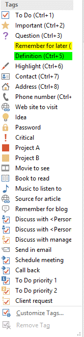 OneNote for Windows 10 offers fewer tags.