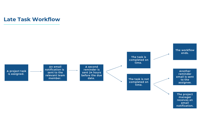 Once the task is finished, the workflow ends. You could also send automated notifications to your own inbox when a task is late and when the task is completed.