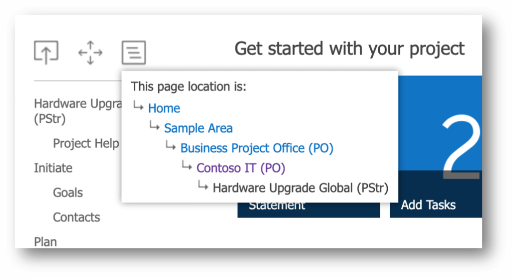 Each level of the hierarchy is a link that allows you to jump directly to any other project site in the project office.