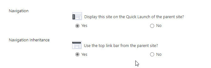 7. Select the appropriate Navigation and Navigation Inheritance options for your environment. The defaults selected in your environment are fine.
