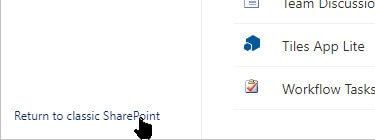 Note: If you are using SharePoint 2016 or 2019, click Return to classic SharePoint next.