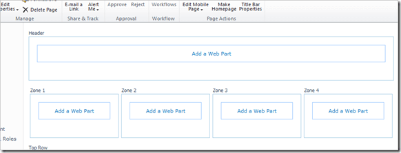 When you open the page for editing in SharePoint, it should have a web part zone layout like the below. You should now be able to create a layout that matches your own unique needs!