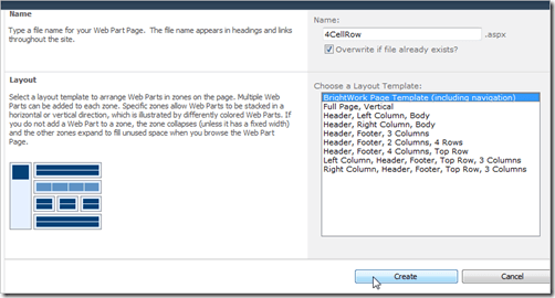 First off, we will create a BrightWork Web Part page. If you don’t have BrightWork, just create a standard web part page using one of the SharePoint layout templates.