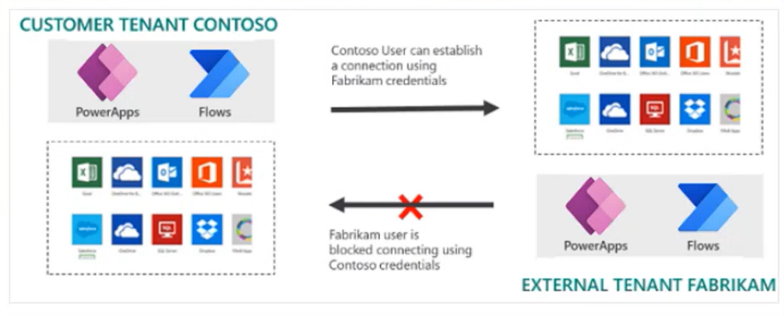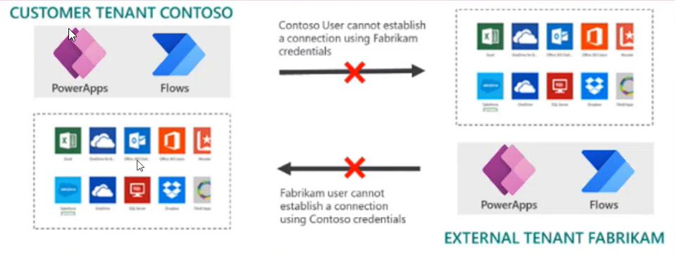 • Contoso tenant blocks all connections from Fabrikam credentials