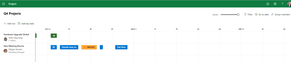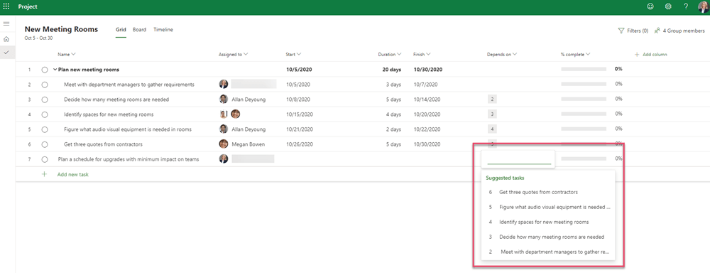 In the next section, you’ll see how to plan a project to install new meeting rooms with Project for the web.