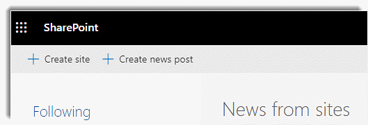 ‘Create Site’ and ‘Create News post’ at the top of the page.