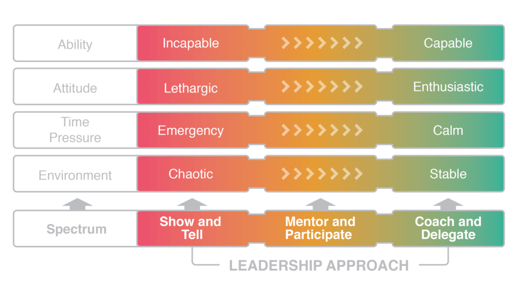 Ability Spectrum: Sometimes, team members are capable, competent, and able to do the job at hand. Other times, they are not capable or trained for the tasks ahead.
