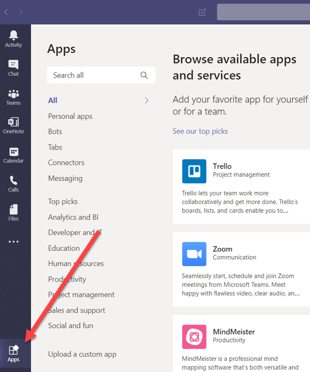 Select ‘Apps’ in the left-hand menu for a full list of options, including solutions from Microsoft and third-party vendors.
