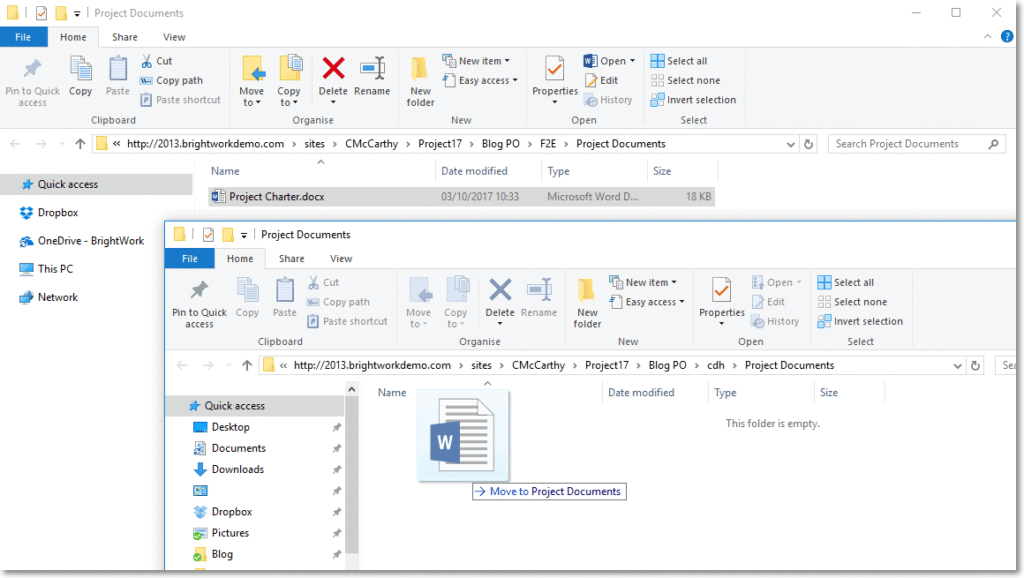 Then you will have two windows. Drag and drop the docs from one to the other and test. Do not copy the docs as this will not retain the history. You must drag the docs, hence moving from one folder to the other.