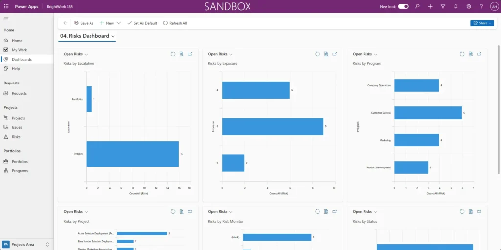 Centralized Issue Register: BrightWork 365 maintains a single repository for tracking issues, resolutions, and ownership.