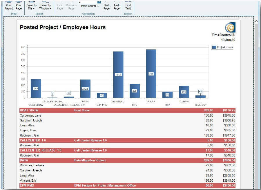 TimeControl provides flexible Excel-like reporting formats that have unlimited levels of data selection, filtering, and sorting. It also includes a Drill Down Analyzer capability for instant ad-hoc analysis of data at any level.