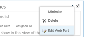 Before you exit the edit page mode, choose to edit the web part, change the Toolbar Type to No Toolbar, change the title of the web part to “Top 5 Open Issues,” and click OK.