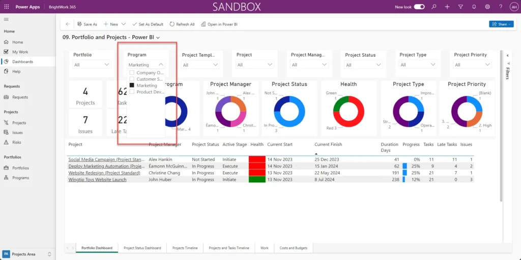 Standardized project management is only effective when it’s measurable. BrightWork 365 integrates seamlessly with Power BI to provide actionable business intelligence reports and interactive dashboards.