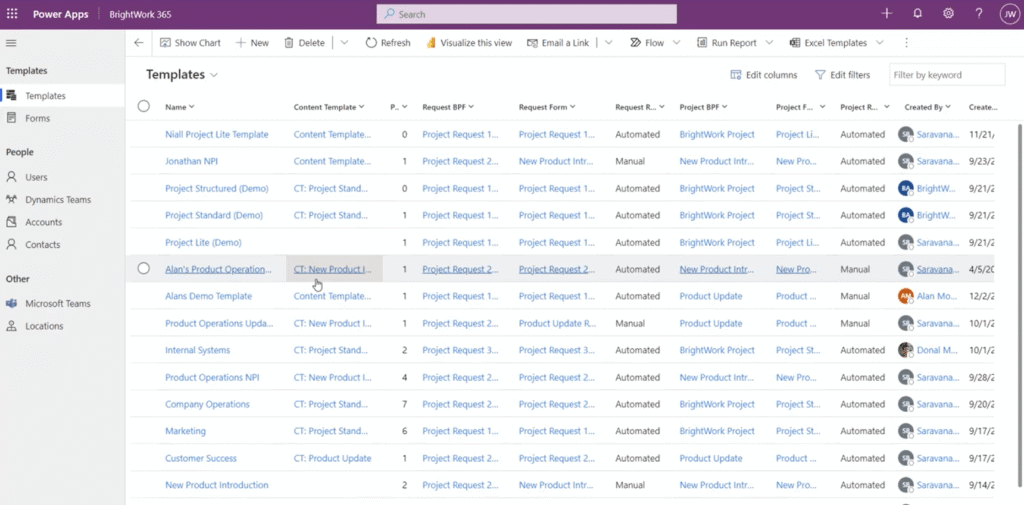 In your BrightWork 365 Project Portfolio Management software overview, you have ‘Requests’. These request templates help you ensure that the right projects get started at the right time and with the right team. Your new project requests go through a 4-stage process of Draft, Review, Approve, and Create Project. Each process gives your team a ‘request form’ to fill in the project details. These forms can be customized based on the type of project. All valid requests to start a new project go through the Draft, Review, and Approve phases, and then eventually a project gets created if that’s the right and the desired outcome. BrightWork 365 has created this automated project request management process using Microsoft Power Automate.