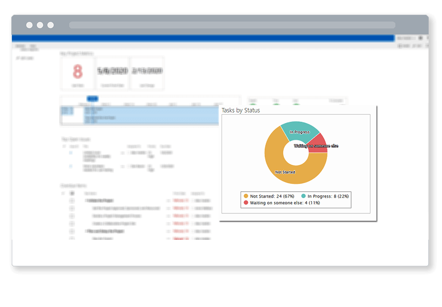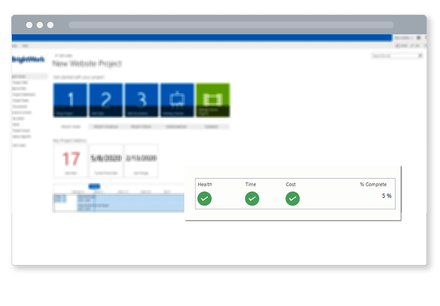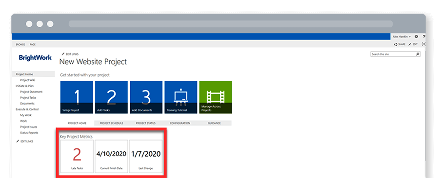 Just below the Promoted Links, you’ll find a set of clickable metric tiles. These dashboards let you know how you are doing against the project schedule.
