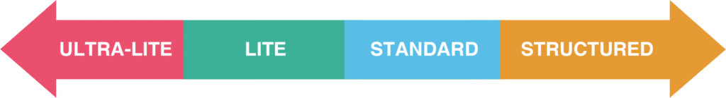 For example, a project might start at Lite and later move to Ultra Lite or shift towards Standard, depending on the changing needs of the project.