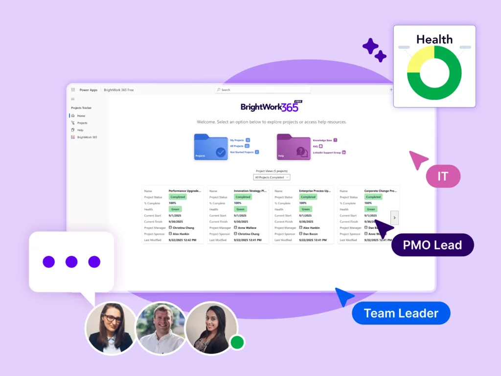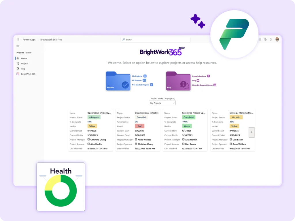 BrightWork 365 Free is a streamlined project tracking app built on Microsoft 365 and the Power Platform. Track unlimited projects with unlimited users, without the complexity of traditional project management tools.