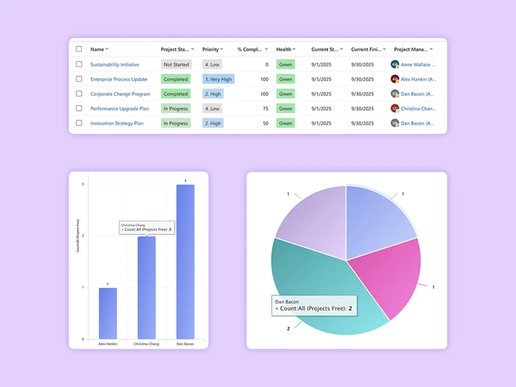 Immediate visibility – Track progress, health, and key dates in a clean, unified interface.