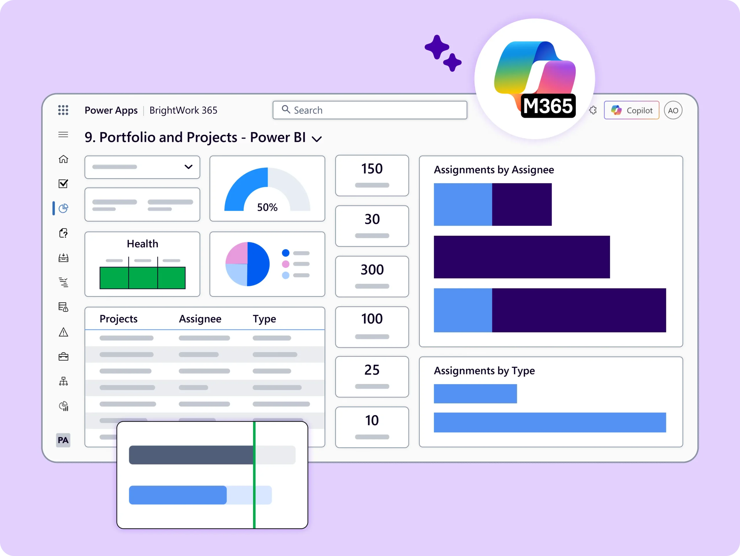 Create and share dynamic, real-time reporting on any program or portfolio in Power Apps or Power BI.