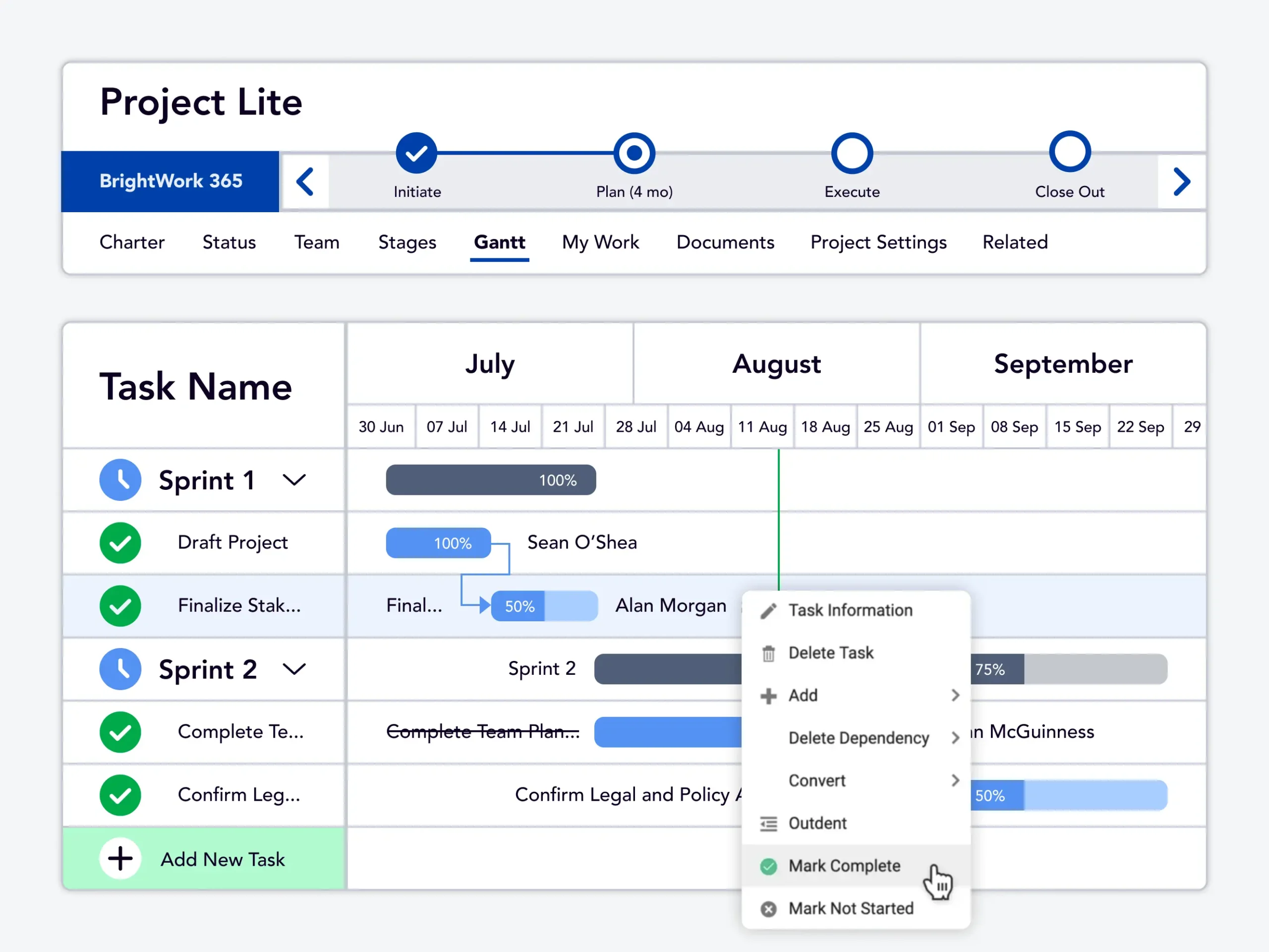 Customize – Easily configure your BrightWork 365 solution to customize your project workflows and processes.