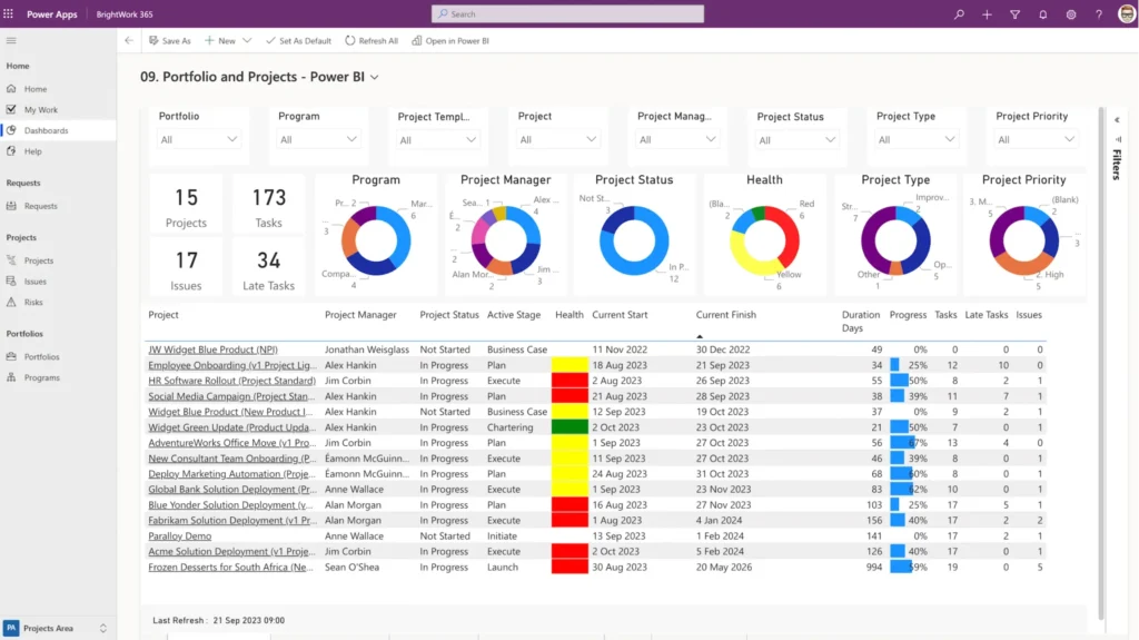 Power BI in BrightWork 365 can deliver many Benefits for senior executives and PMO leads. BrightWork 365 solution teamed with Power BI creates portfolio dashboards that provide high-level immediate visibility across portfolios. Senior executives can leverage these dashboards to view multiple portfolios and programs in a single glance.
