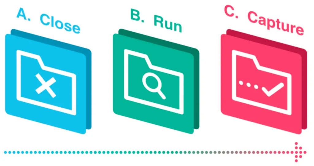Close the Project: A. Close Out the Project and the Project site. B. Run Project Post-mortem and Track Lessons Learnt. C. Capture any Useful Modifications (made to the project site for use on future projects).