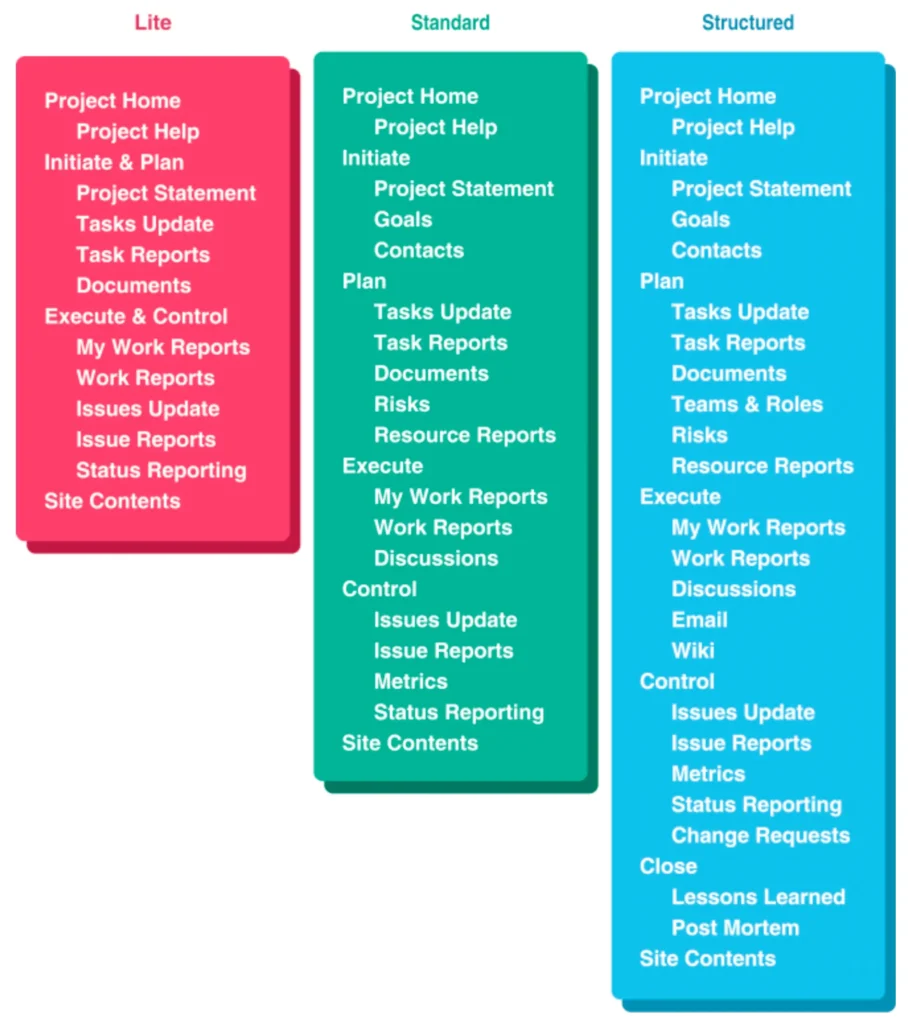 If the collaborative project site was modified as you went through the project, you will want to review the adaptations and apply those approved to the template used to create new project sites. This is a very pragmatic and efficient way to improve your approach to project management.