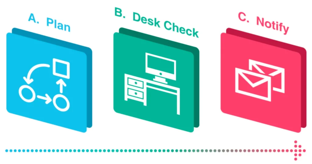 Plan and Setup the Project: A. Plan the Project. B. Desk Check the Project Plan. C. Notify the Team of their Responsibilities