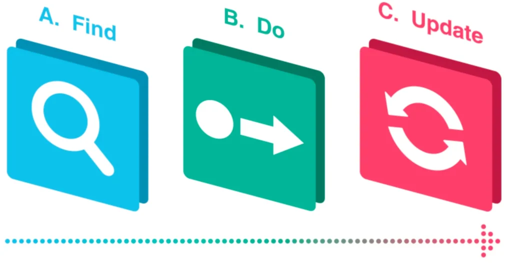 Work the Project: A. Find Work. B. Do Work. C. Update Progress on Work (recording any issues)