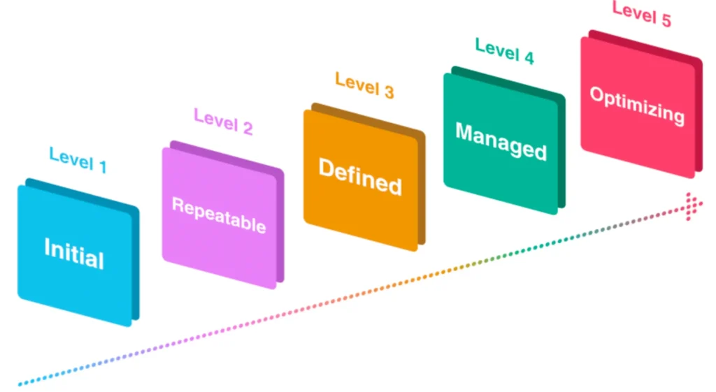 Optimizing: Finally, Level Five, is called Optimizing. Note that it is not called optimized as this would indicate an end point. Processes are dynamic, and as such, we need to tweak and optimize them from time to time. The practice here is to use the metrics and other information to make decisions to implement as process changes. In earlier levels, we have basic checks in place, and we make changes because we think or believe they make sense. But at Level Five, metrics and data are also guiding us intelligently to make changes.