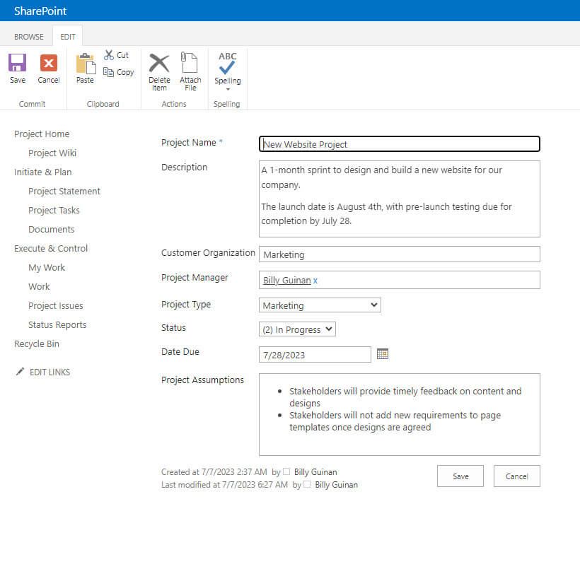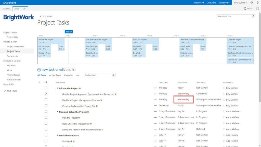As you’ll see later on, achieving this way of working is very easy with the Free SharePoint Project Management Template and SharePoint project management dashboard.