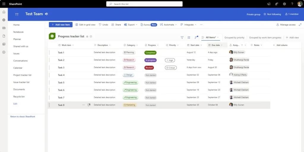 Key Features of a SharePoint Project Management Site in SharePoint in Microsoft 365