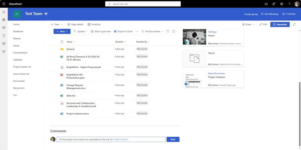 SharePoint has a tight integration with the rest of the Microsoft 365 (like Word, PowerPoint, and Excel), so document sharing and co-authoring is extremely when working on project deliverables.